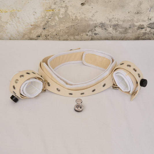 Erlebe den Nervenkitzel der totalen Kontrolle mit den Ganzkörper-BDSM-Fesseln von KlinikBondage. Diese Fesseln sind perfekt für alle, die eine umfassende und sichere Fixierung suchen. Hergestellt aus hochwertiger, veganer Baumwolle und Edelstahl, bieten sie dir Haltbarkeit und gleichzeitig angenehmen Tragekomfort. Ideal für fortgeschrittene Nutzer: Das Bett Bondage 12 Punkt Fixierung Ganzkörper Set und das Permanent Bondage Bett Set bieten dir mehrere Fixierungspunkte – perfekt für eine Vielzahl an Fessel-Szenarien und Positionen.