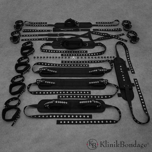 Unsere medizinisch inspirierten Fixierungen sind funktional so entwickelt, dass man sie jederzeit schnell an die Situation und den gewünschten Halt anpassen kann. Mehrere Fixierungspunkte, wie bei der 9 Punkt Fixierung, ermöglichen eine flexible Abstufung: Wer leichten Halt möchte, nutzt wenige Punkte, wer ein intensiveres Erlebnis bevorzugt, erweitert das System um zusätzliche Fixierungspunkte. Besonders unser 20 Punkt Fixierung Bett Restraints steht für umfassende Immobilität und ist das ideale Set für alle, die sich vollständig fallen lassen möchten.
